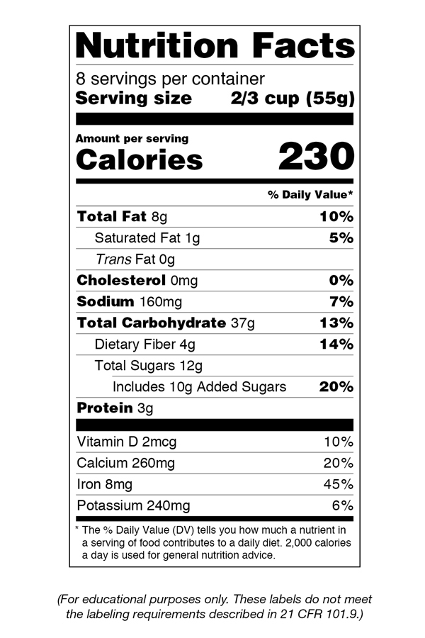 Nutrition facts labels